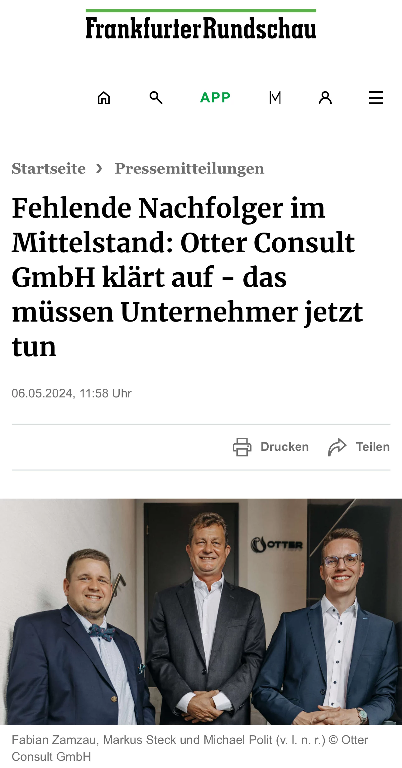 Die Geschäftsleitung von Otter Consult genießt in der Öffentlichkeit einen Expertenstatus bei den Themen Unternehmensverkäufe, Unternehmenskäufe und Unternehmensnachfolgen.